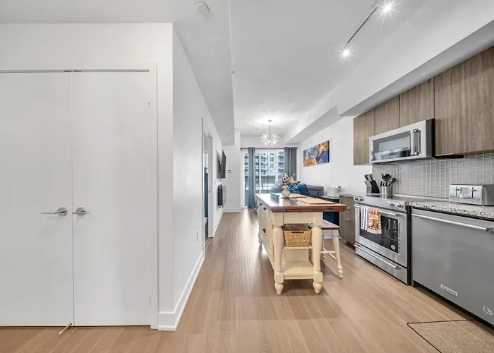Modern Condo With Balcony, Gym And Free Parking offers such self-cateering options as a fully equipped kitchen appointed with an oven and a dishwasher. Billy Bishop Toronto City airport is located 5 km away, while Marine Parade Drive bus station is in proximity to Modern Condo With Balcony, Gym And Free Parking.